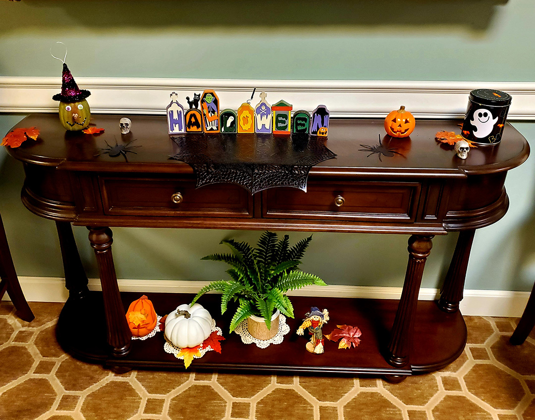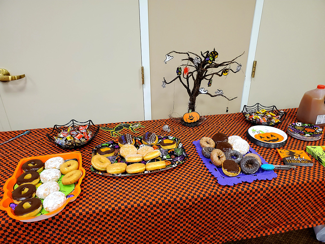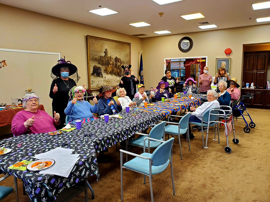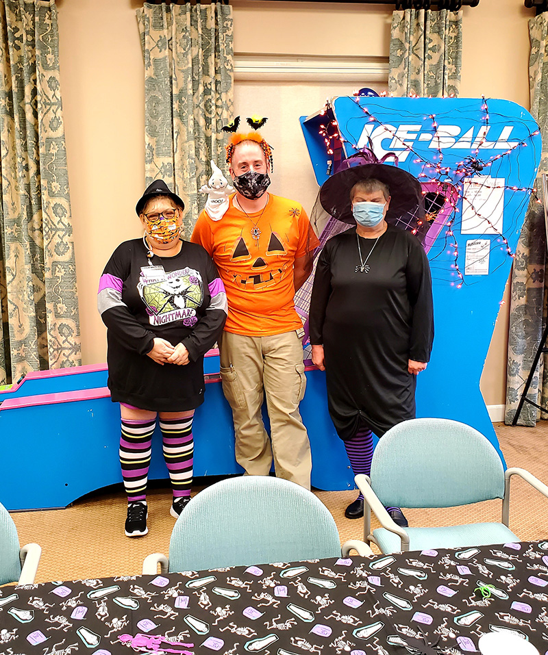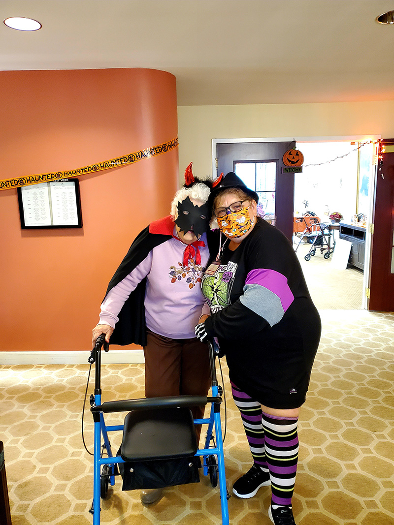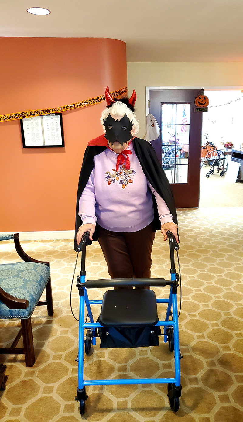 It was truly a GREAT day at The Meadows, packed full of festive Halloween fun for everyone! The residents got a real kick out of seeing staff members dressed in costume today and they repaid the favor this afternoon with an AWESOME Halloween parade! We finished our afternoon with donuts, cider, candy and Halloween themed Bingo and Trivia!
