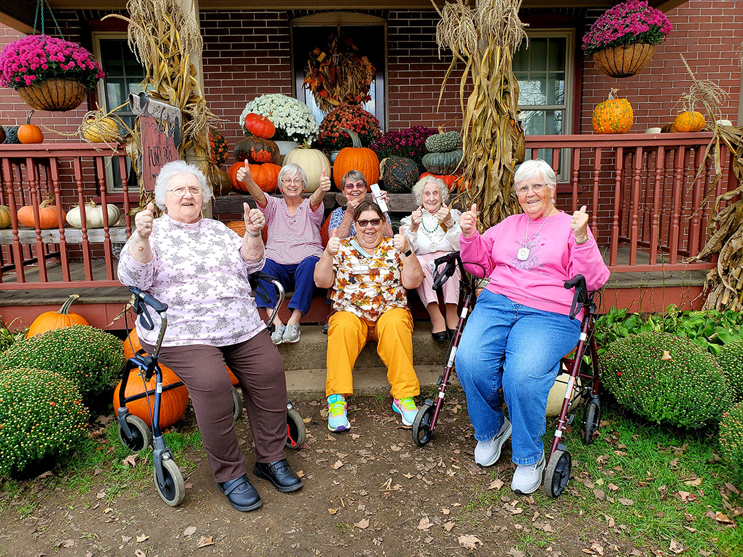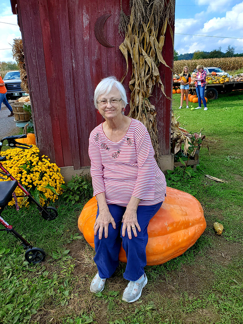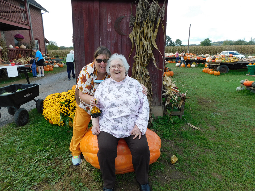 In early October we took full advantage of the beautiful weather by taking a trip to resident Terry Carpenter's family Pumpkin Farm in Linden! Terry enjoyed seeing her family and introducing all her friends. We picked pumpkins and gourds, saw all the animals, toured the fields and took a lot of pictures! But above all else WE HAD FUN!